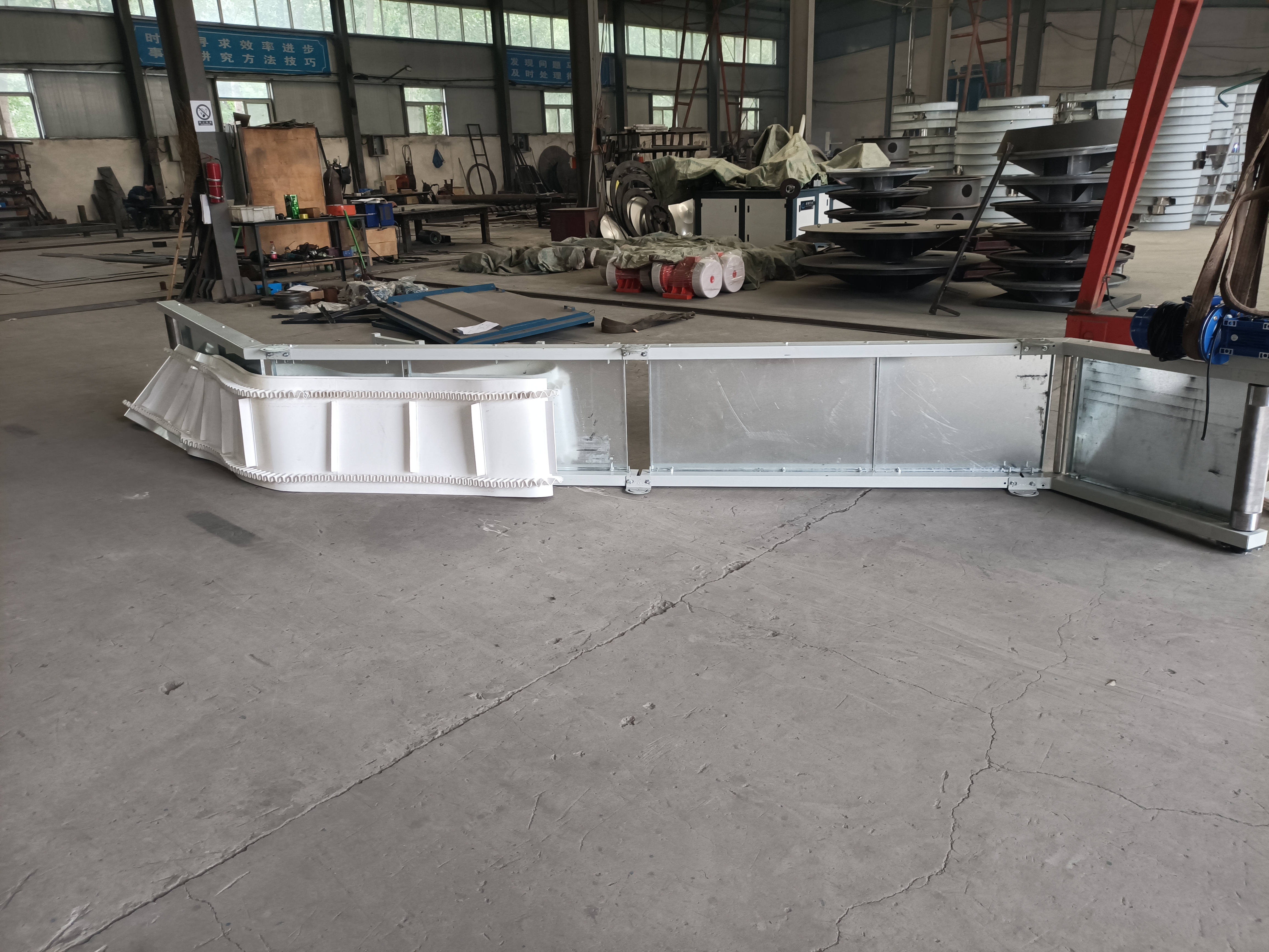 針對粉狀、顆粒狀物料:首選波狀擋邊帶加隔板系統(tǒng)。這種組合能形成封閉的匣形空間,有效防止物料在傾角高達60°甚至90°的爬升過程中滑落和飛揚。同時要求設(shè)備具備良好的密封結(jié)構(gòu)。
